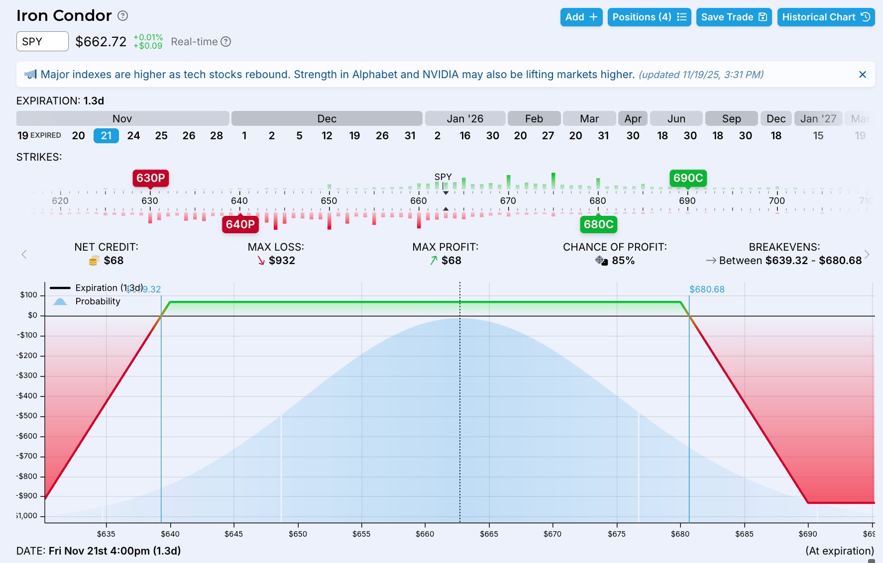 MetricNotesProbability of Profit~60–70% depending on width & IVEV ExampleCredit minus (Probability of loss × loss size)Tail RiskElevatedVol CrushPossible post-event