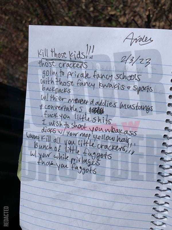 Steven Crowder Breaks Nashville Shooter Manifesto.BREAKING: Nashville School Covenant Shooter Audrey Hale’s “DEATH DAY” Manifesto Targeted “Cr*ckers” with “white privlages”Dennis HendricksonNov 06, 20231ShareStory Developing.Facebook, Google are already suppressing this. I’ll post more as it develops.Subscribe